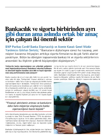 Banka sigortacılığı et ve tırnak gibi, birbirine çok paralel ha- kazanma ihtiyaçları arttıkça sigorta firmalarına da çok farklı