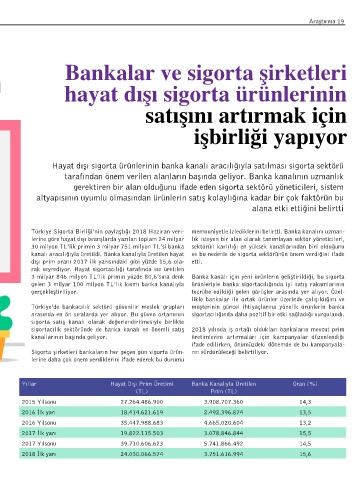 kanalı aracılığıyla üretildi. Banka kanalıyla üretilen hayat ve bu nedenle de sigorta sektörünün önem verdiğini ifade