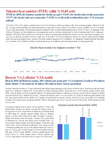 6 milyar 630 milyon dolar olarak gerçekleşti. AB’nin ihracattaki payı 2017 Haziran ayında %47,5 iken, 2018 Haziran ayında
