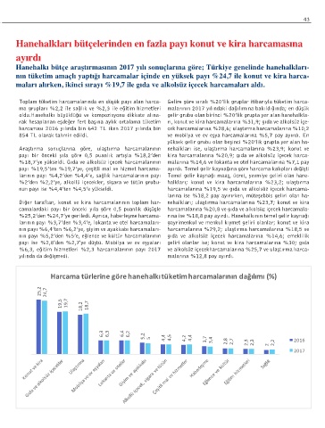 camalardaki payı bir önceki yıla göre 0,5 puanlık düşüşle harcamalarına %20,8 ve gıda ve alkolsüz içecek harcamala-