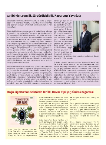 Sürdürülebilirlik Raporu ile kamuoyuyla paylaştı. sahibinden. ğımız sürdürülebilirlik