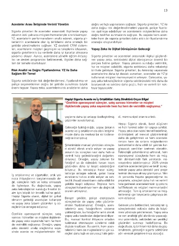 yardımcı oluyor. Ayrıca, acentelere yönelik eğitim ihtiyaç- Sigorta şirketleri ve acenteleri arasındaki ilişkiyi güçlendi-