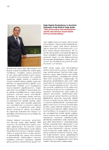 maktadır. Yapay zekâ destekli çözümleri- ru kararlar alabileceklerdir. Acentelerimizin