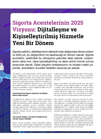 bir müşteri deneyimi sunulmasını sağlayacak. Bu diji-  lık hizmetleri olacak. 2025’te sigorta acenteleri, yalnız-