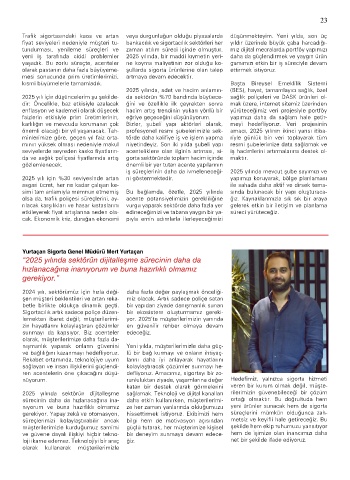 2025 yılı için düşüncelerim şu şekilde- da sektörün %70 bandında büyüece- sağlık poliçeleri ve DASK ürünleri ol-