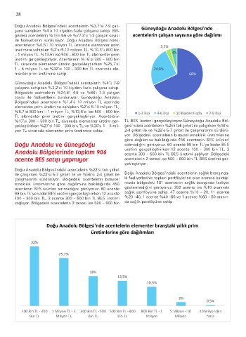 yon TL civarında elementer prim üretimine sahip. 2-4 şirket ile ve %29’u 5-7 şirket ile çalışmalarını sürdürü-