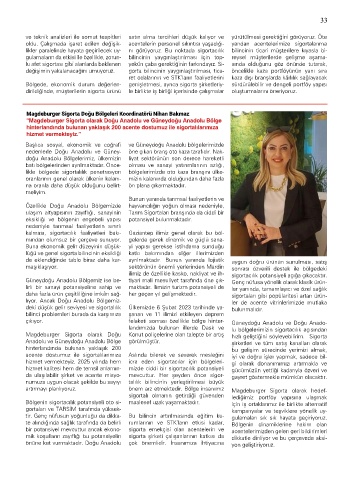 hizmet vermekteyiz. 2025 yılında hem icra eden sigortacılar için bölgeleri- gi olarak donanımımızı artırmakla ve