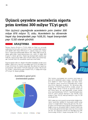 milyon TL olarak görüldü. Hayat dışı branşlardaki acente payı