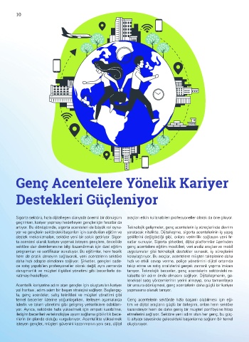 artıyor. Bu dönüşümde, sigorta acenteleri de büyük rol oynu- Teknolojik gelişmeler, genç acentelerin iş süreçlerinde devrim