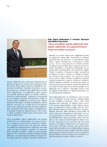tek olmak, Doğa Sigorta olarak önceliklerimiz ara- ve ürünleri sürekli takip etme, kendini geliştirme ve