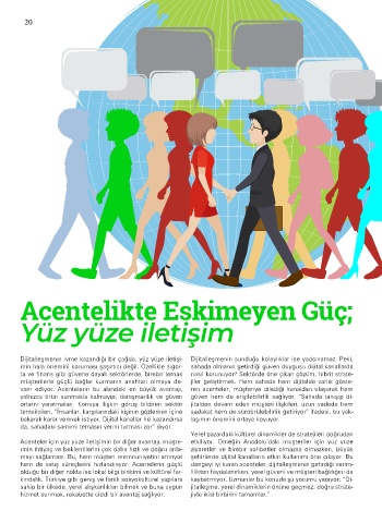 Acenteler için yüz yüze iletişimin bir diğer avantajı, müşte- etkiliyor. Örneğin Anadolu’daki müşteriler için yüz yüze