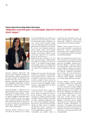 Marmara Bölgesi, Türkiye’nin ekono- rumsal sigorta bilinci gelişmiştir. lışmalarıyla bu potansiyel daha etkili