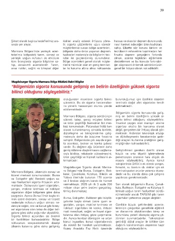 tüm branşlarda sigorta bilgisine sa- Bölge acenteleri genel olarak müşte- desteklemek ve bu konuda farkındalı-
