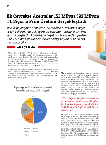çekleştirdi. Bu dönemde acenteler aracılığıyla elde edilen toplam   Mart ayı sonunda tüm dağıtım kanalları bazında