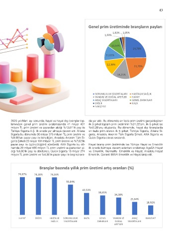2025 yılı Mart ayı sonunda, hayat ve hayat dışı branşlar top- da yer aldı. Bu dönemde en fazla prim üretimi gerçekleştiren