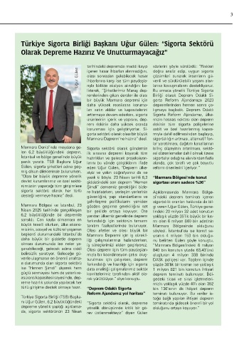 Gülen, sigorta şirketleri adına geç- eden Uğur Gülen, “Deprem ülke- reform önerilerini içeriyor.”