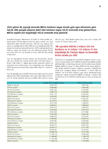 oranında, 514 bin kişi artarak 9 milyon 825 bin kişi olarak büyüklüğü ile Türkiye Hayat ve Emeklilik