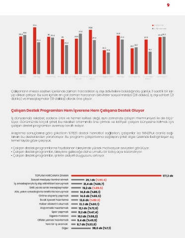 yıp dikkat çekiyor. Bu süre içinde en çok zaman harcanan aktiviteler sosyal medya (26 dakika), iş dışı sohbet (21