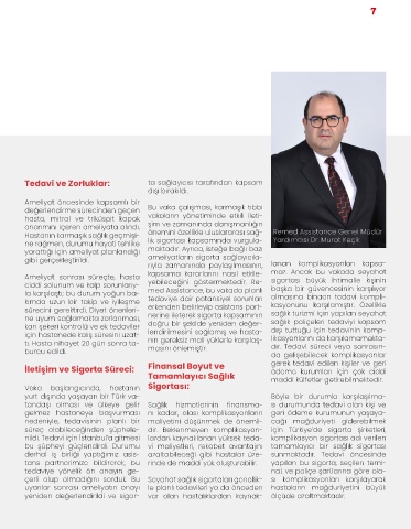 nildi. Tedavi için İstanbul’a gitmesi lardan kaynaklanan yüksek teda- komplikasyon sigortası adı verilen
