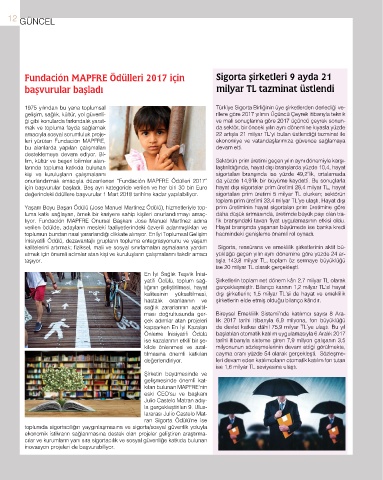 değerindeki ödüllere başvurular 1 Mart 2018 tarihine kadar yapılabiliyor. sigortaları prim üretimi 5 milyar TL olurken; sektörün
