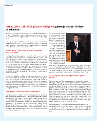 Güneş Sigorta Genel Müdürü Serhat Çetin, sigorta sektörünün gün- Güneş Sigorta’nın 60 yıl-