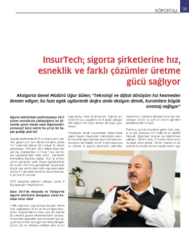 Sigorta sektörünün performansını 2017 uygulamayı ideal bulmuyoruz. Sigorta şir- ilgilendiren, yüzlerce davaya konu olan tar-