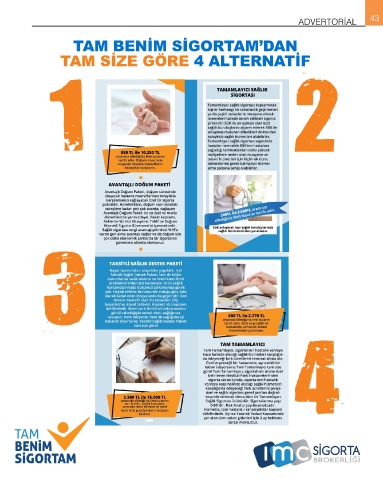 43 ADVERTORİAL TAM BENİM SİGORTAM’DAN TAM SİZE GÖRE 4 ALTERNATİF 1 2 3 4 Hakan Beşdaş hakanb@bestyayincilik.com