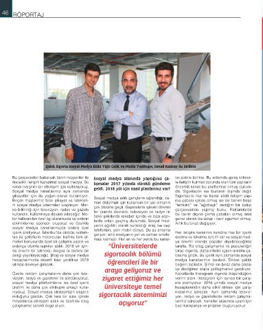 sosyal medya platformlarını ise özel içerik ma planlıyoruz. 2018 yılında sosyal medya