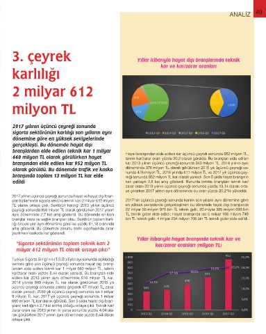 TL olarak ortaya çıktı. Sektörün karlılığı 2013 yılının üçüncü en yüksek seviyelerde gerçekleşirken bu dönemde hayat dışı branşlarda