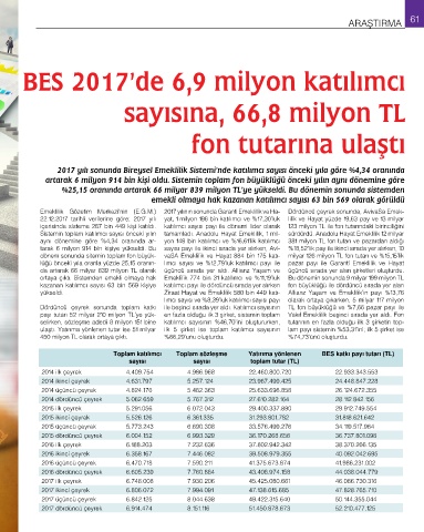 aynı dönemine göre %4,34 oranında ar- yon 148 bin katılımcı ve %16,61’lik katılımcı 381 milyon TL fon tutarı ve pazardan aldığı