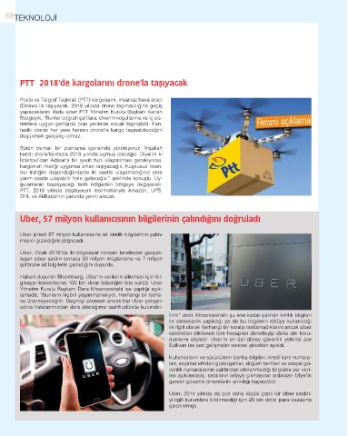 (Drone) ile taşıyacak. 2018 yılında drone taşımacılığına geçiş