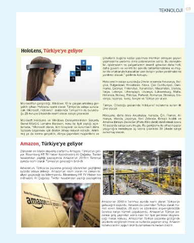 Microsoft’un geliştirdiği, Windows 10 ile çalışan artırılmış ger- Türkiye, Ortadoğu pazarında HoloLens’i kullanıma sunan ilk