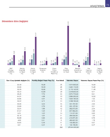 Portföy Değeri Son 1 ay içindeki Son 3 ay içindeki Son 6 ay içindeki değişim (%) Son 12 ay içindeki değişim (%) Portföy Değeri Pazar Payı (%) Fon Adedi Yatırımcı Sayısı Yatırımcı Sayısı Pazar Payı (%)