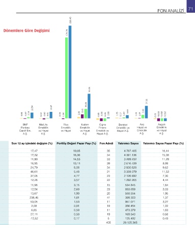 Portföy Değeri Son 1 ay içindeki Son 3 ay içindeki Son 6 ay içindeki değişim (%) Son 12 ay içindeki değişim (%) Portföy Değeri Pazar Payı (%) Fon Adedi Yatırımcı Sayısı Yatırımcı Sayısı Pazar Payı (%)
