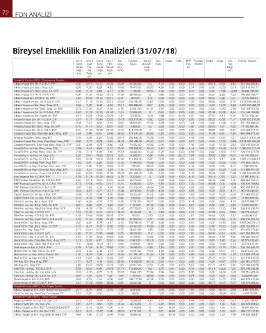 Bireysel Emeklilik Fon Analizleri (31/07/18)